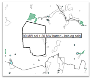 Når der som i eksemplet er områder, hvis matrikulære grænser ikke støder op til hinanden, er der tale om geografisk ikke sammenhængende områder. Her vil det også blive vurderet, om anlægget ud fra de gældende tilslutningsregler er et eller flere anlæg. Det gælder både for anlæg, der er indmeldt som ét, eller hvis der er henvendelse om flere separate anlæg i samme nærområde fra samme udvikler/ejer.
